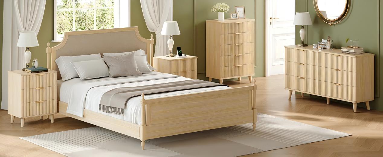 Laintene 6 Drawer Dresser for Bedroom – Solid Wood Fluted Storage Cabinet with Metal Handles, Modern Wave Design for Bedroom, Living Room & Entryway, Natural
