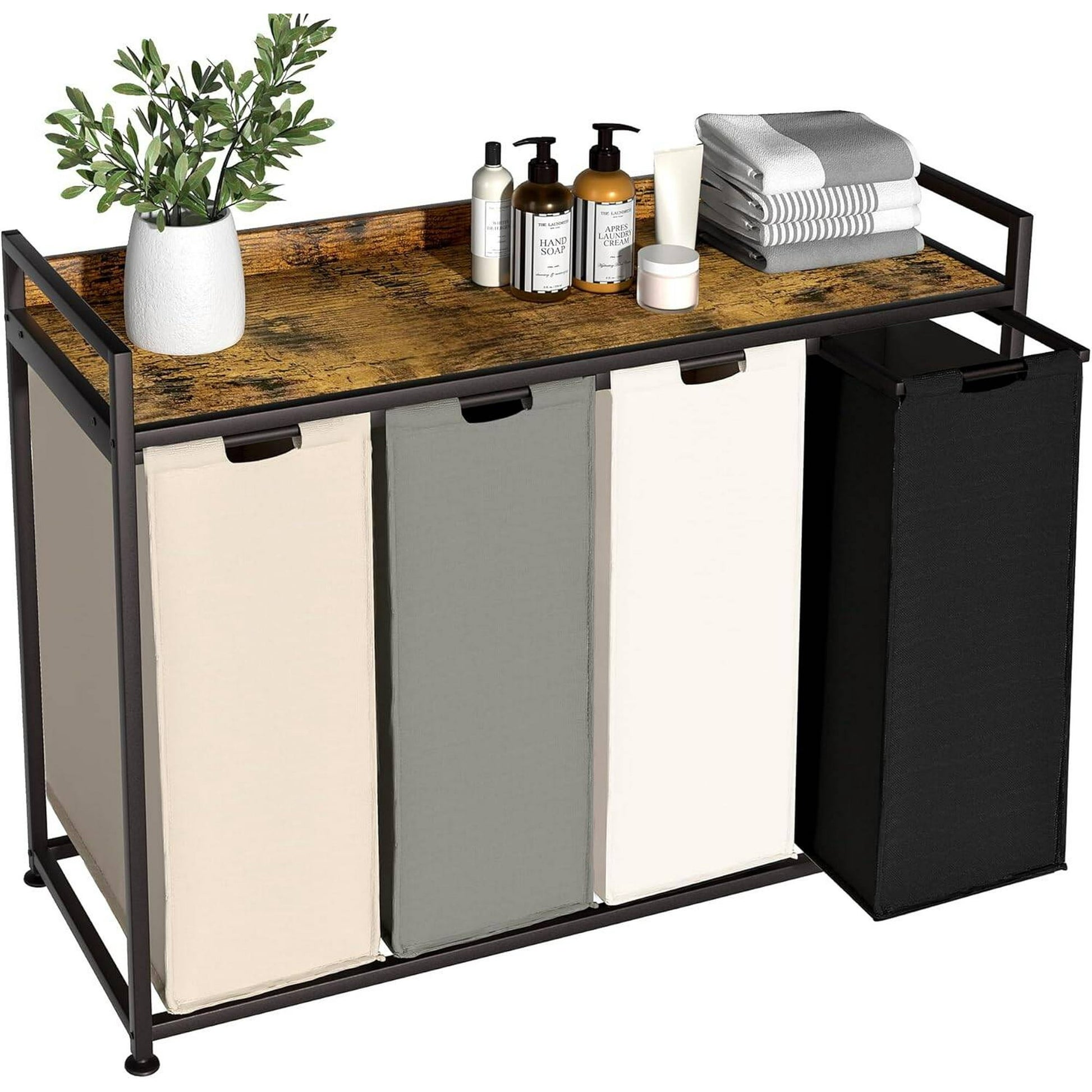 Laintene 156L Laundry Hamper with Removable Bags - 4-Section Freestanding Clothes Sorter, Top Shelf & Side Pockets for Dorm, Bedroom, Bathroom Organization