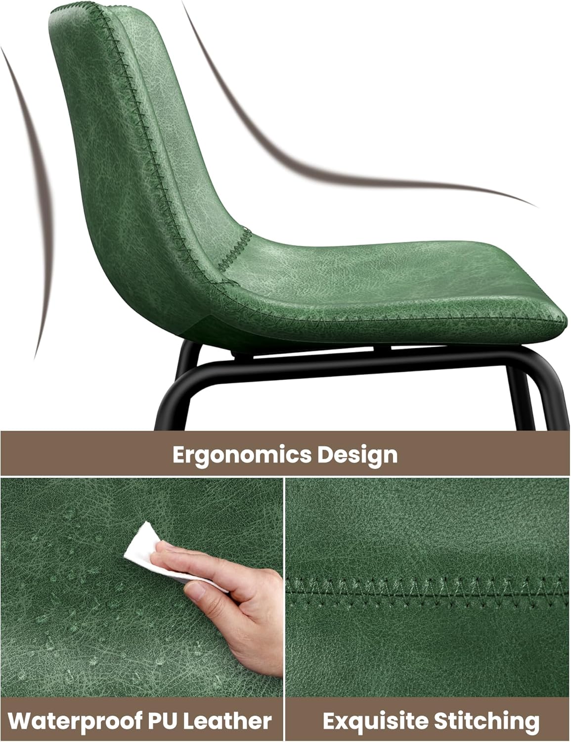 LainTene 30" Bar Stools Set of 3 – Faux Leather Counter Height Stools with Backrest & Footrest, Heavy-Duty Metal Frame for Kitchen, Bar, Living Room, Green