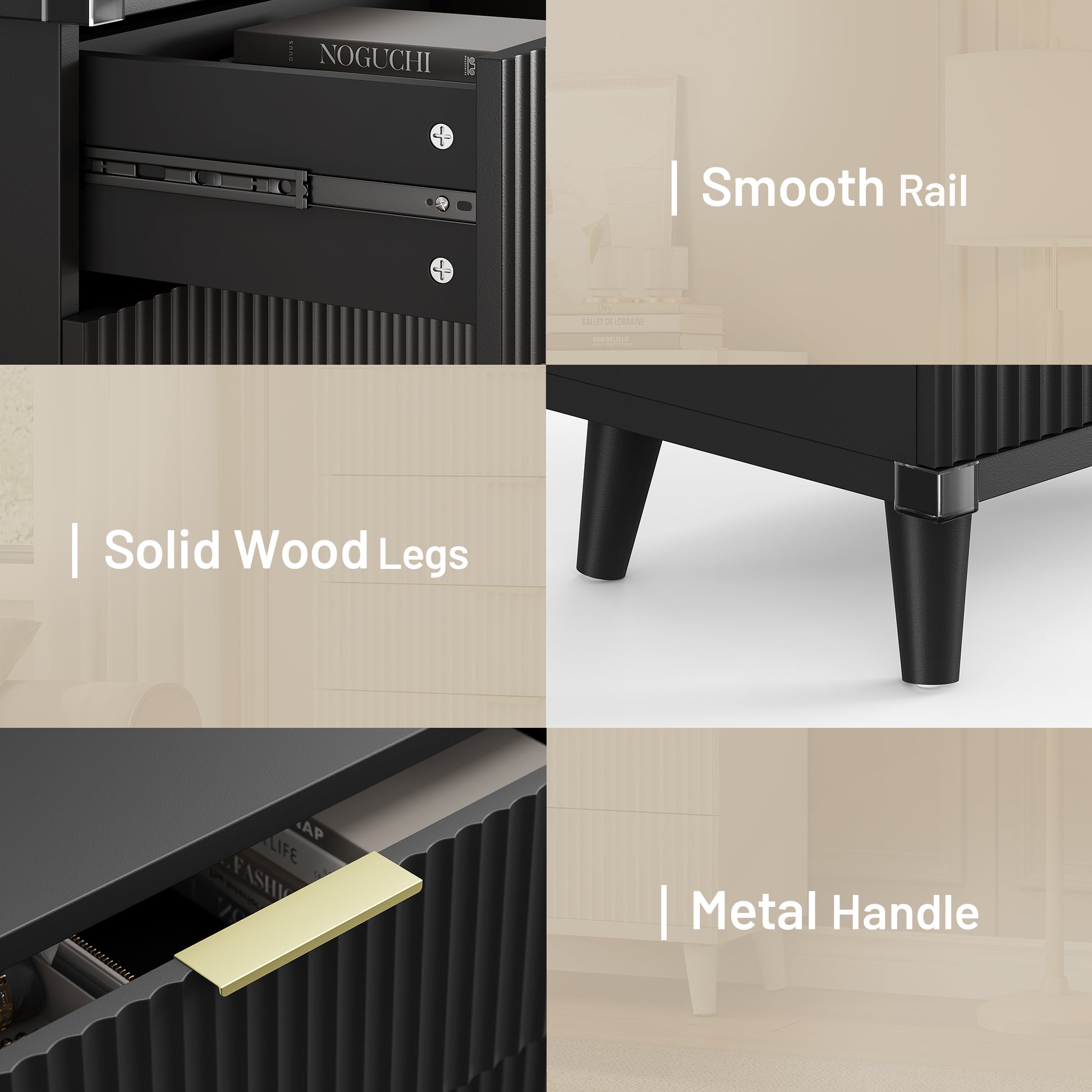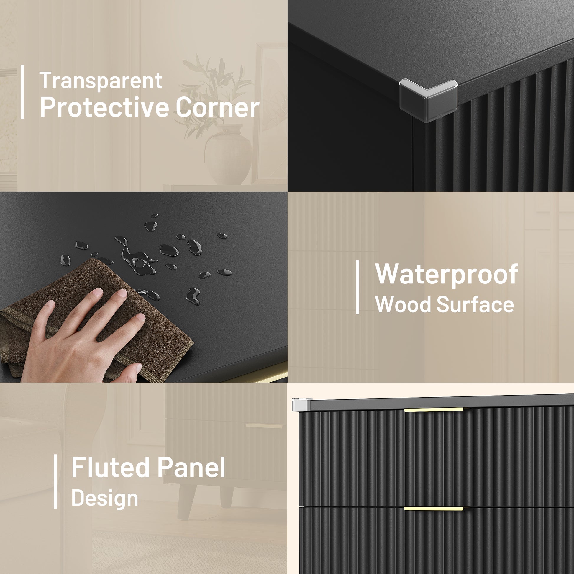 Laintene 5-Drawer Tall Dresser - Slim Boho Storage Cabinet with Fluted Design, Solid Wooden Chest for Bedroom, Closet & Small Spaces, Black