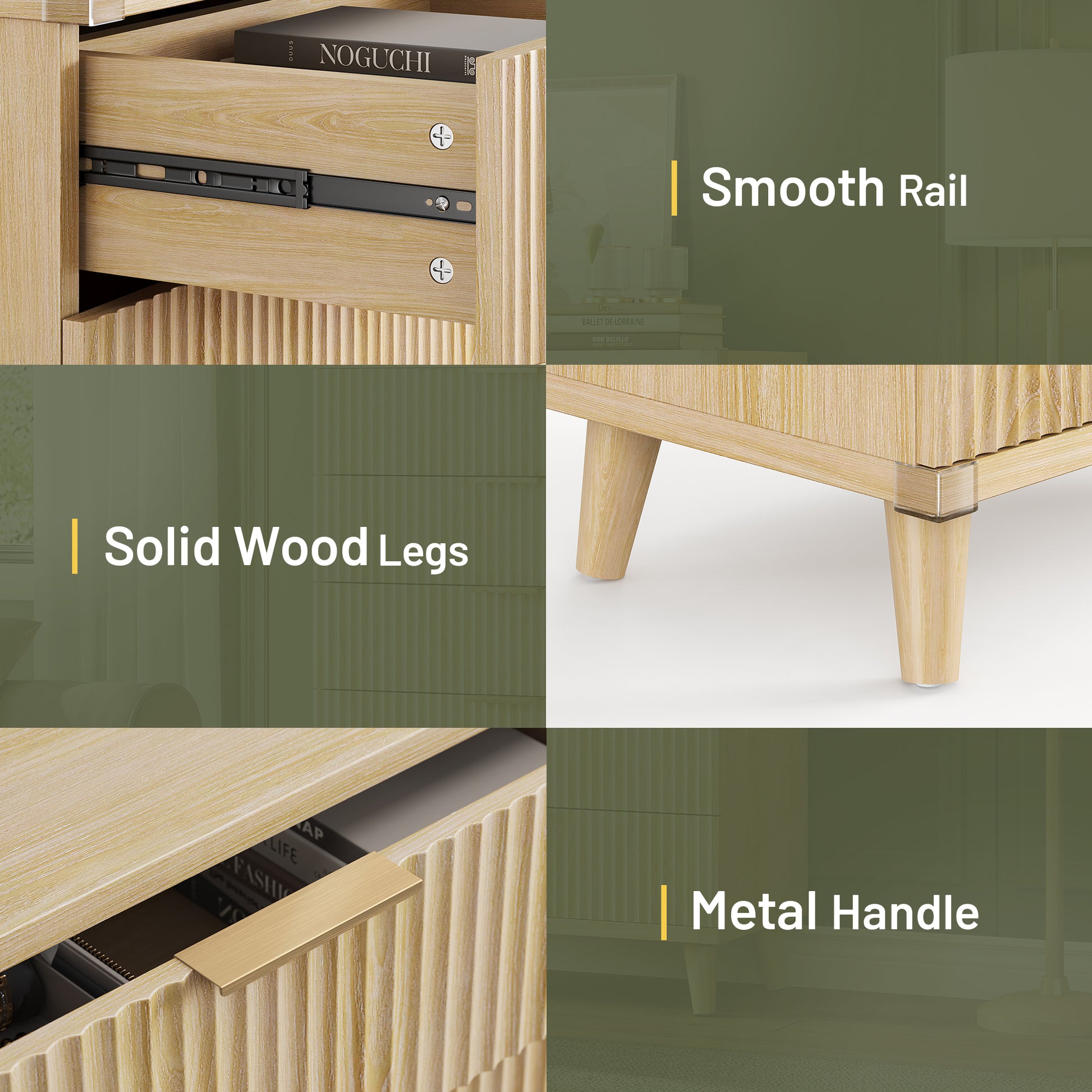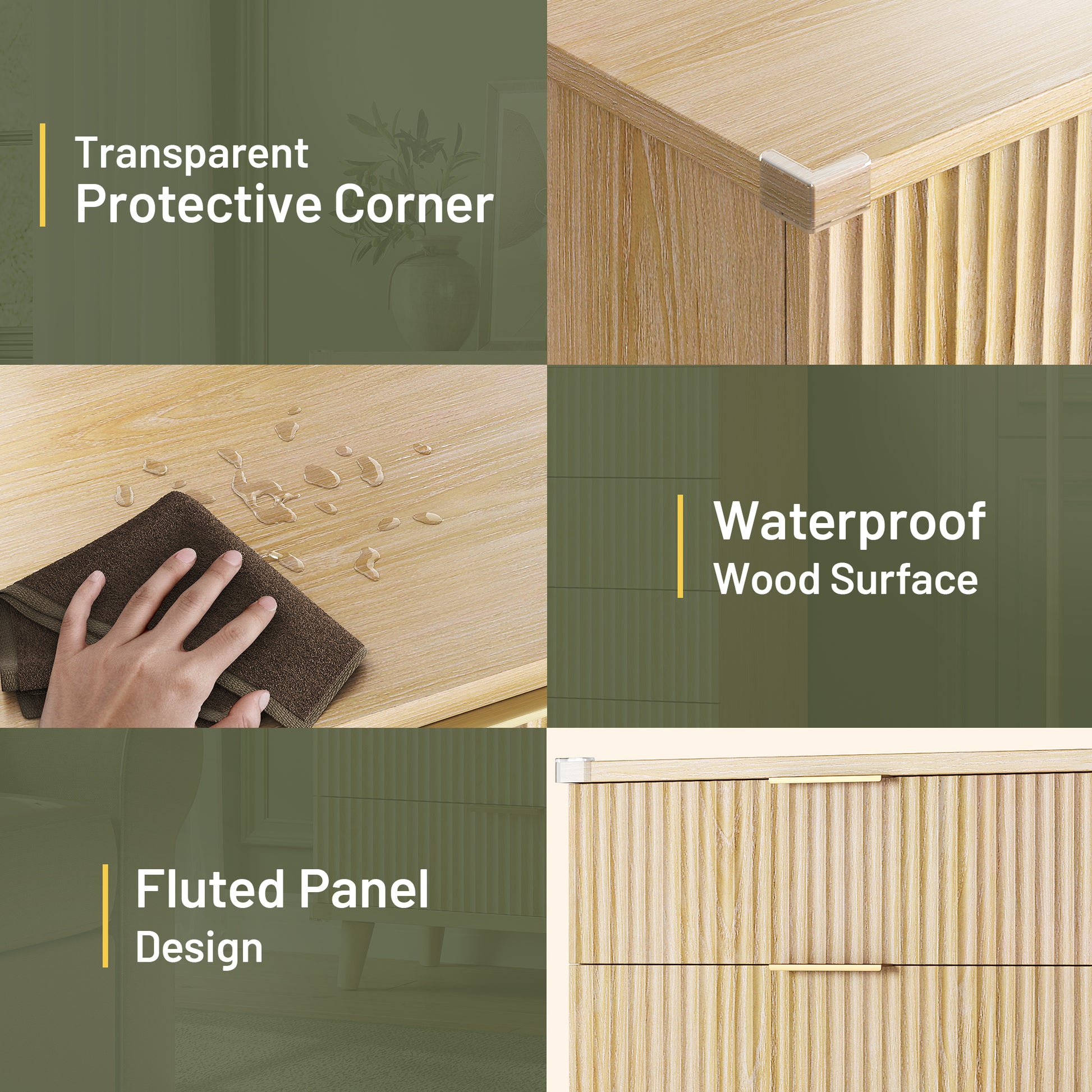 Laintene 5-Drawer Tall Dresser - Slim Boho Storage Cabinet with Fluted Design, Solid Wooden Chest for Bedroom, Closet & Small Spaces, Natural