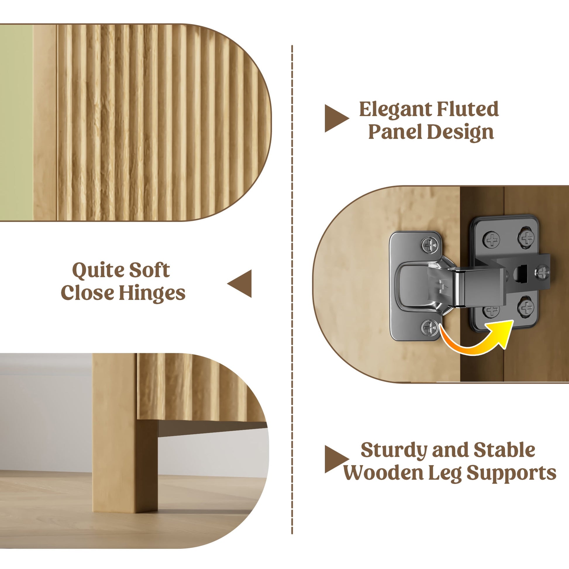 Laintene 55"L Sideboard Buffet Cabinet with Storage, Fluted Accent Storage Cabinet with Doors & Adjustable Shelves for Living Room Dining Room and Kitchen, Natural Oak