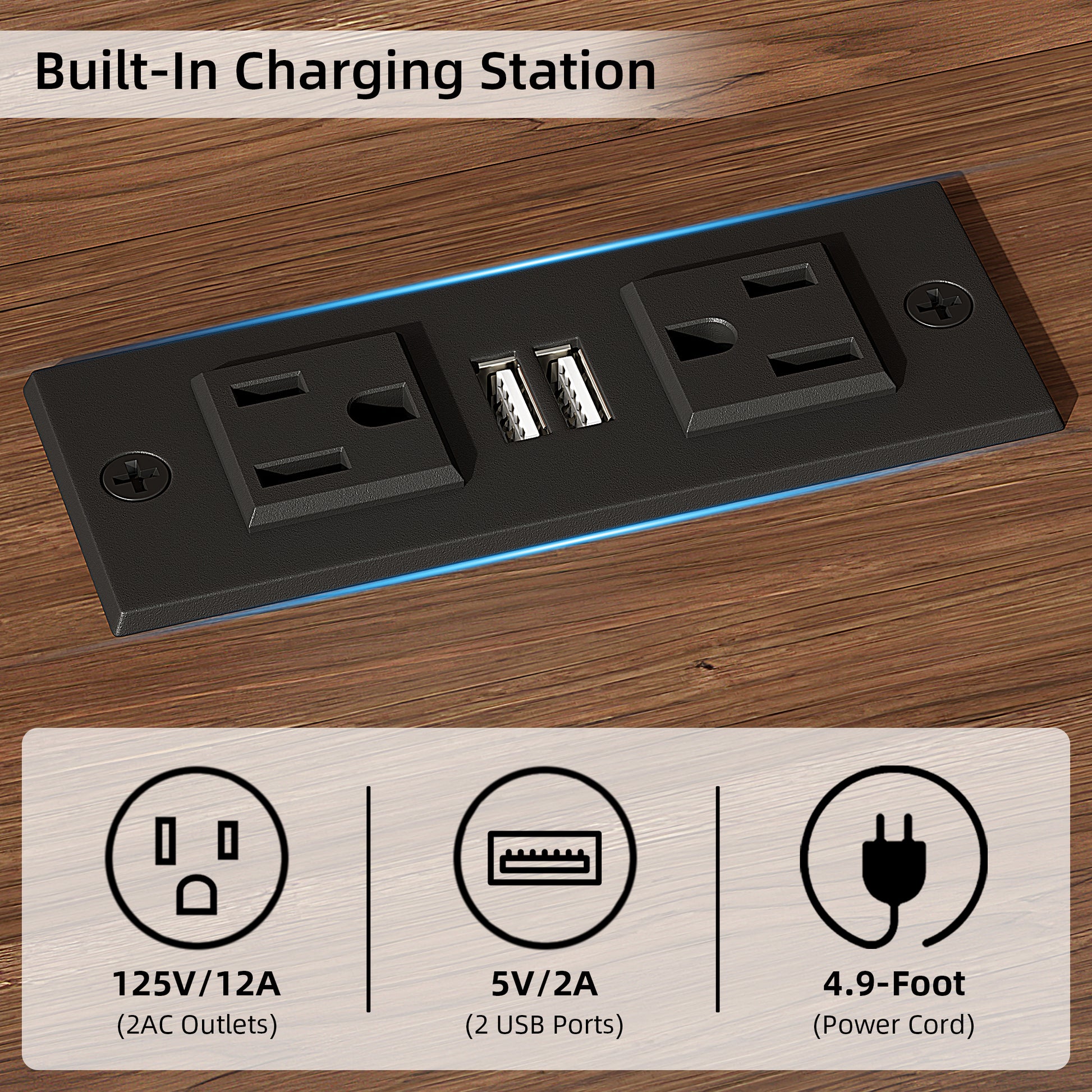 Built-in Power Outlets & Cable Management: 2 USB ports + 2 AC outlets and 3 cable holes keep wires tidy while powering TVs, soundbars, or chargers—no more tangled cords!