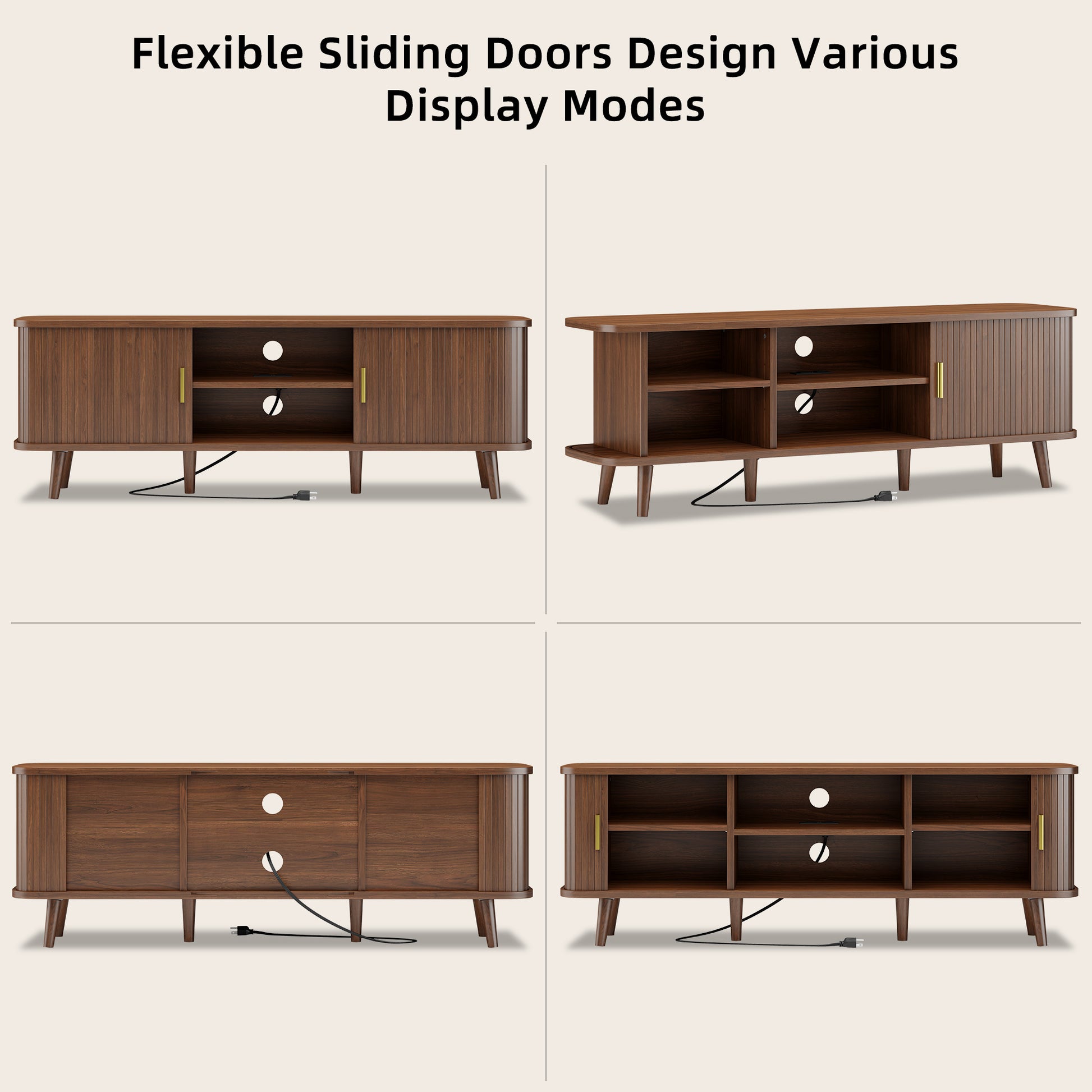 LainTene 65 Inch TV Stand with Sliding Doors – Modern Fluted Media Console for Living Room, Power Outlets (2 USB + 2 AC), Adjustable Shelves, Walnut Entertainment Center