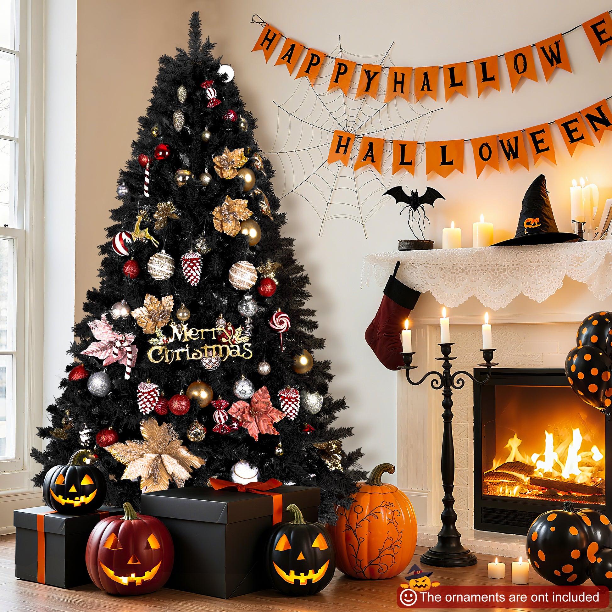 Laintene 6FT Artificial Christmas Tree with 800 Tips, Realistic Fir Xmas Tree for Indoor/Outdoor Decor, Sturdy Metal Stand, Black