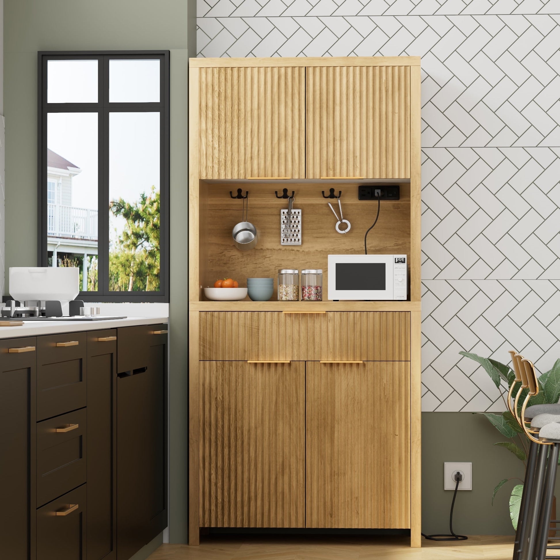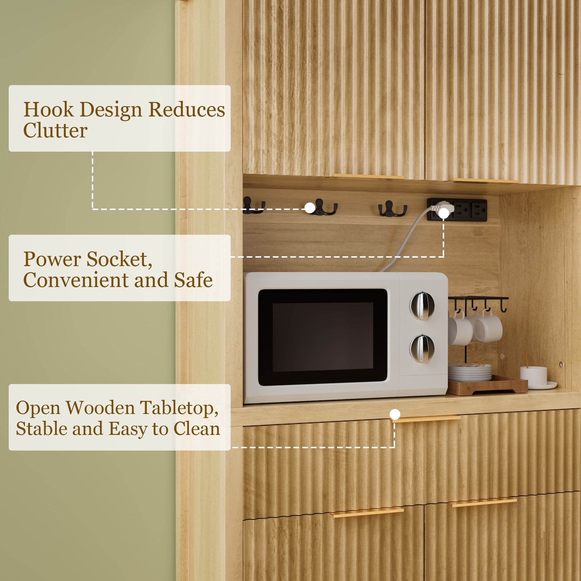 Laintene Fluted Cabinet Set - 70.8"H Pantry with Power Outlet, 55" L Sideboard with Storage Drawers, Adjustable Shelves Storage, Natural Oak