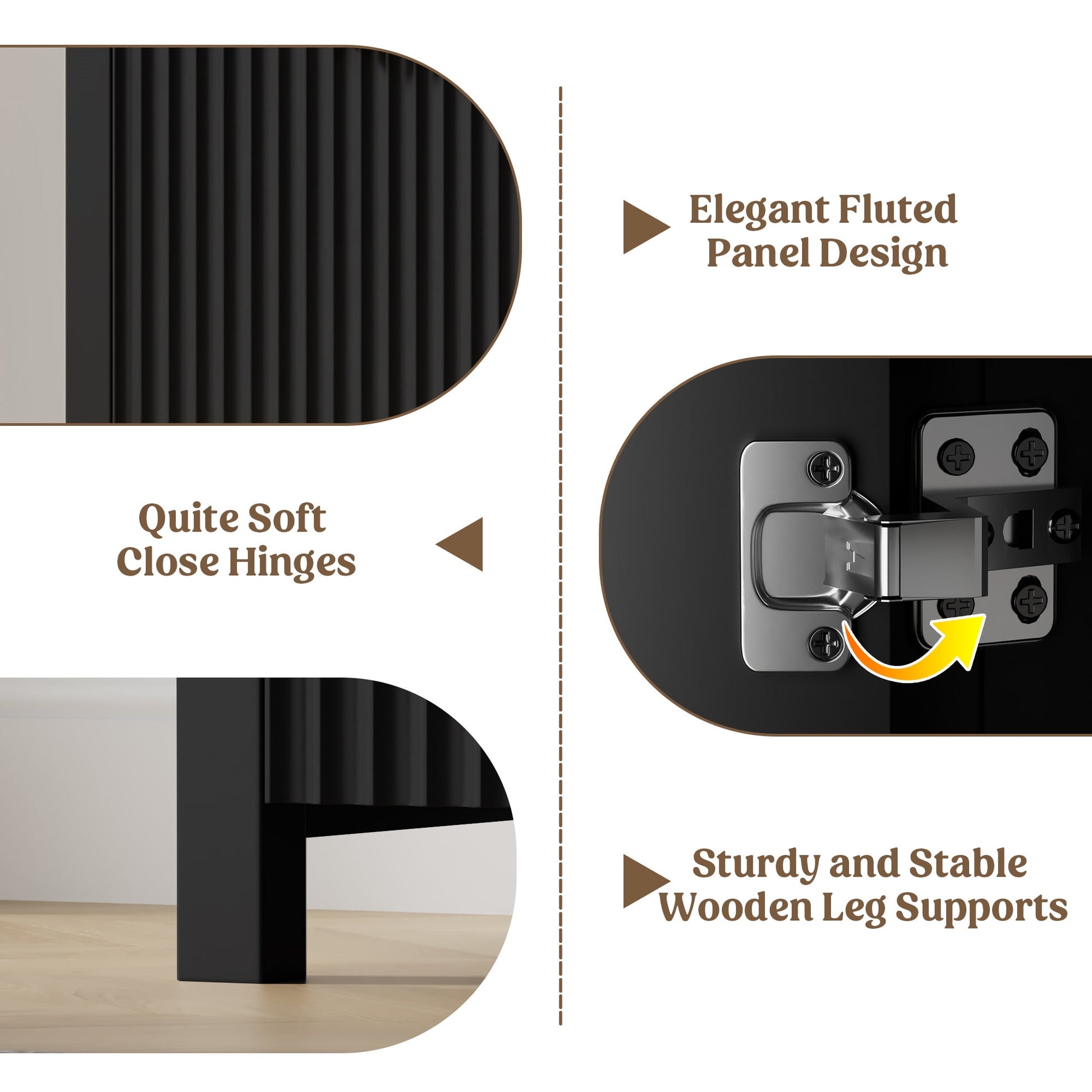Laintene Fluted Sideboard, Storage Buffet Cabinet with Drawers, 55" TV Cabinet for Living Room with Adjustable Shelves, Wooden Accent Cabinet, Black Set of 2