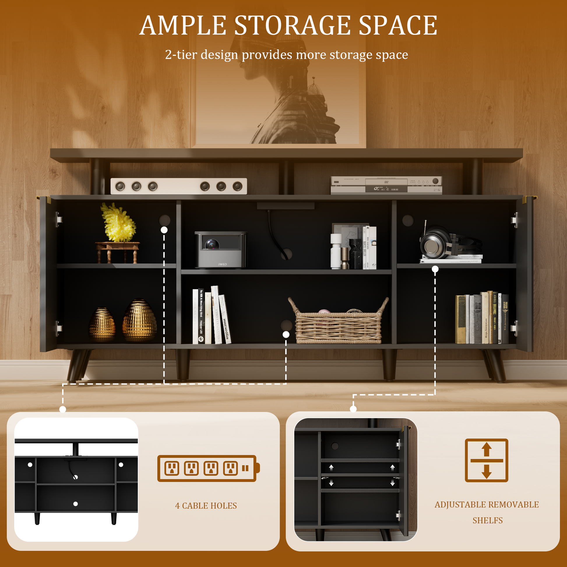 Perfect Fit for 65" TVs: This tv stand for 65 inch tv offers a spacious 59"L surface with reinforced framing to securely hold your television. Pre-drilled back panel simplifies cord management for a clean entertainment center setup.
