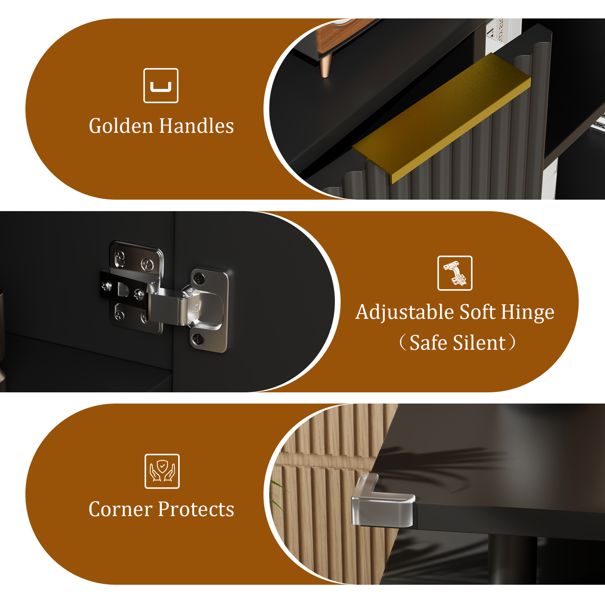 Durable Modern Design: Scratch-resistant engineered wood and metal corners ensure long-lasting use. Soft-close doors and fluted panels elevate this 65 inch tv stand's contemporary style.