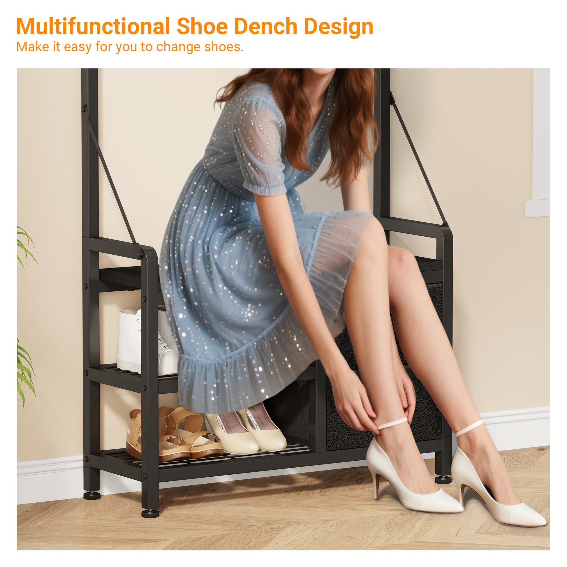 Customizable Hooks and Layout: Our hall tree features three tiers of metal hooks that allowing you to customize the layout to fit your needs. Plus, the bench can be detached, transforming the unit into a standalone shoe station or a wall-mounted coat rack. Enjoy the flexibility to adapt the storage solution to your changing requirements.