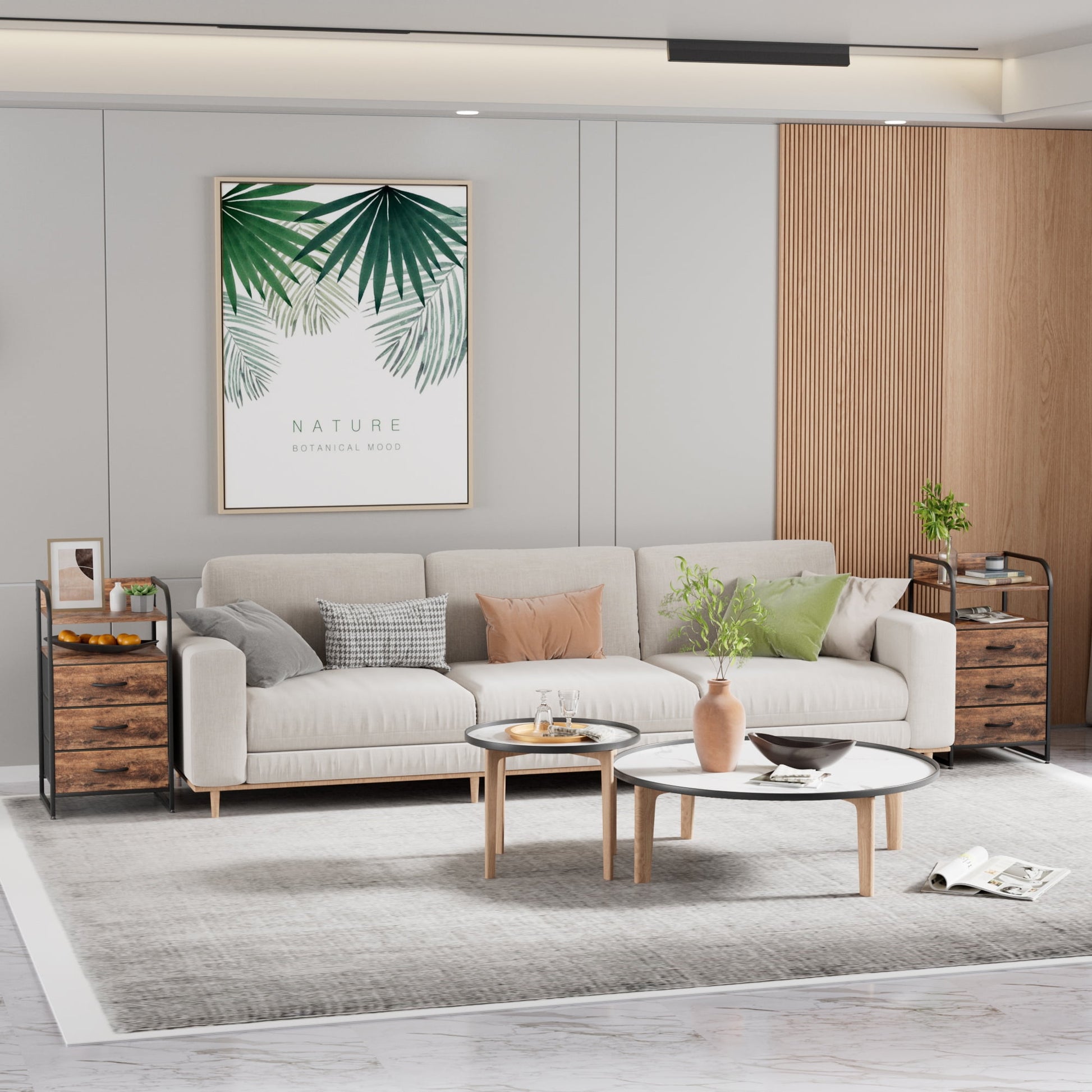 Laintene Night Stand, 3 Fabric Drawer Vertical Dresser, Bedside Table for Bedroom, Side End Tables Living Room Set of 2, Brown