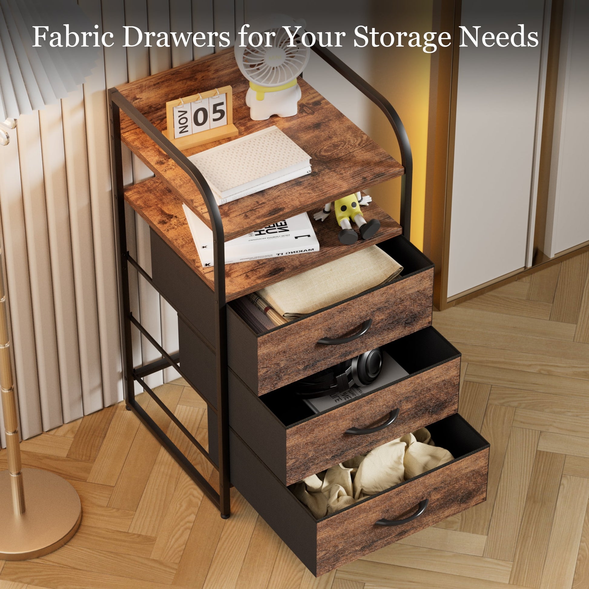 Plenty of Storage Organizer: With 3 drawers and 2 open compartments, Laintene nightstand offers plenty of storage options. The fabric drawers are perfect for storing personal items such as socks, scarves, or bedtime essentials, while the open compartments provide easy access to frequently used books, eyeglasses, or decorative items to keep your space neat and organized.