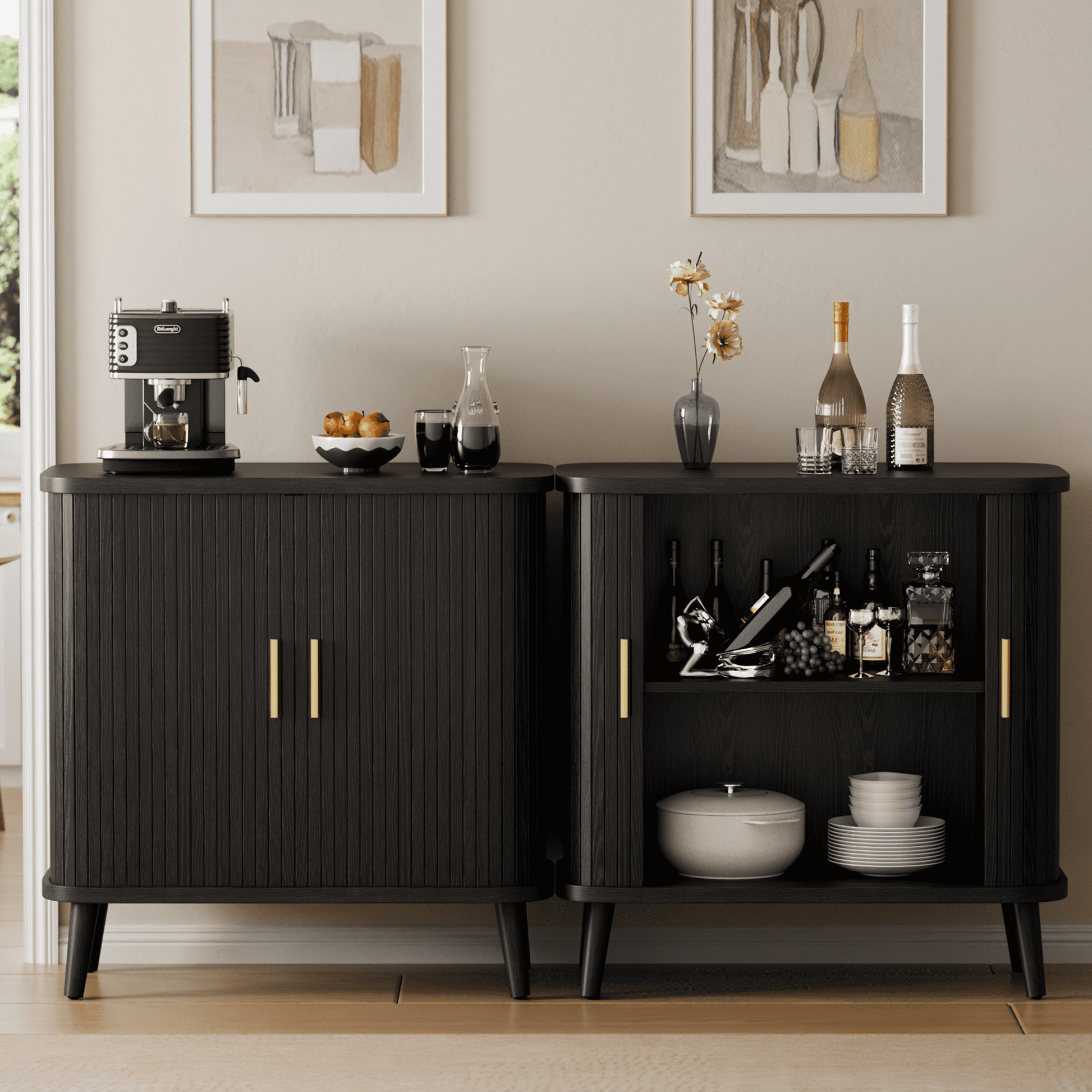 Laintene Sideboard Buffet Cabinet, Storage Cabinet with Sliding Door & Adjustable Shelf, Fluted Accent Coffee Bar for Kitchen, Entryway, Walnut Black