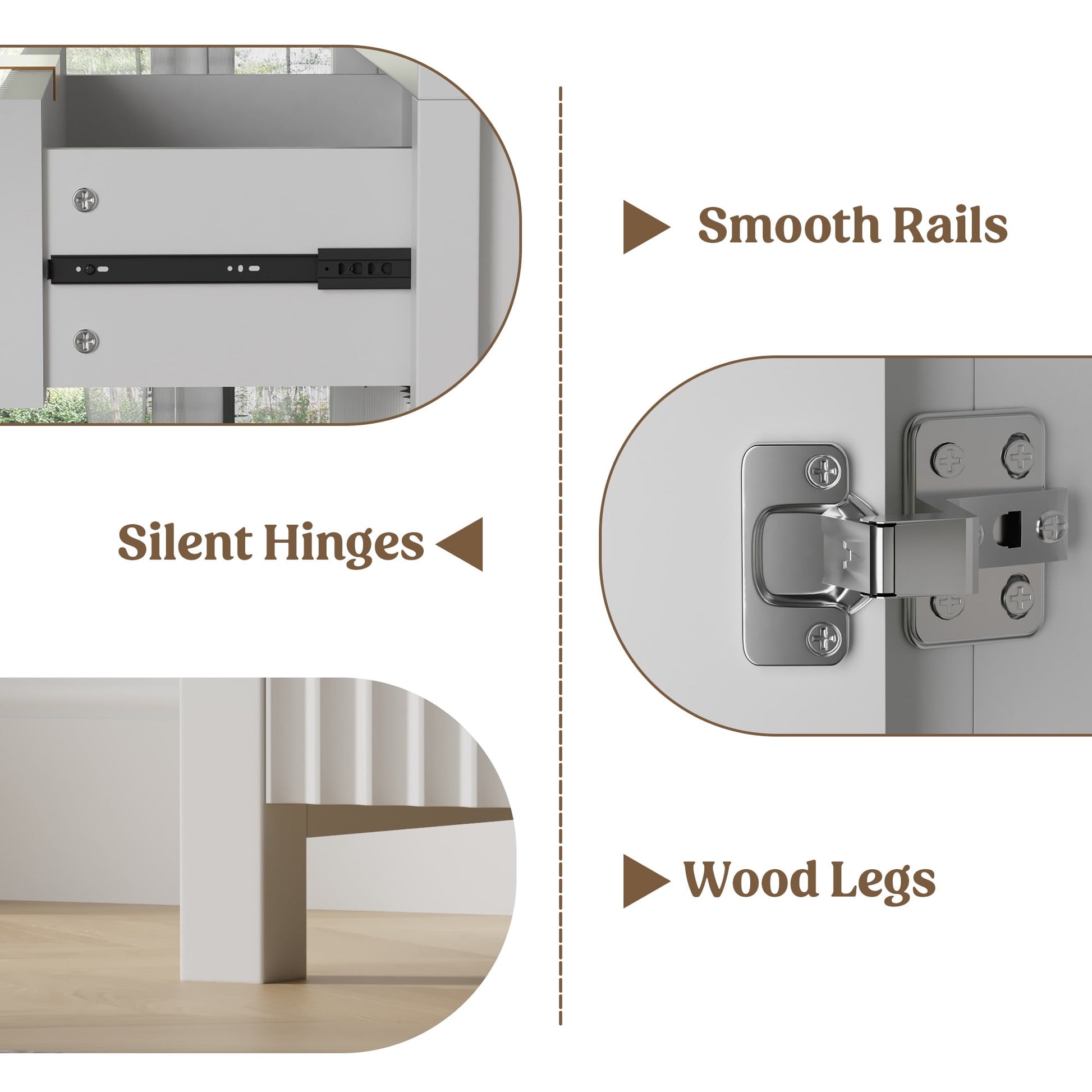 Gently and Noiseless: Soft-closing hinges are noiseless, and the mechanism when activated allows the cabinet door to close gently before fully closing.