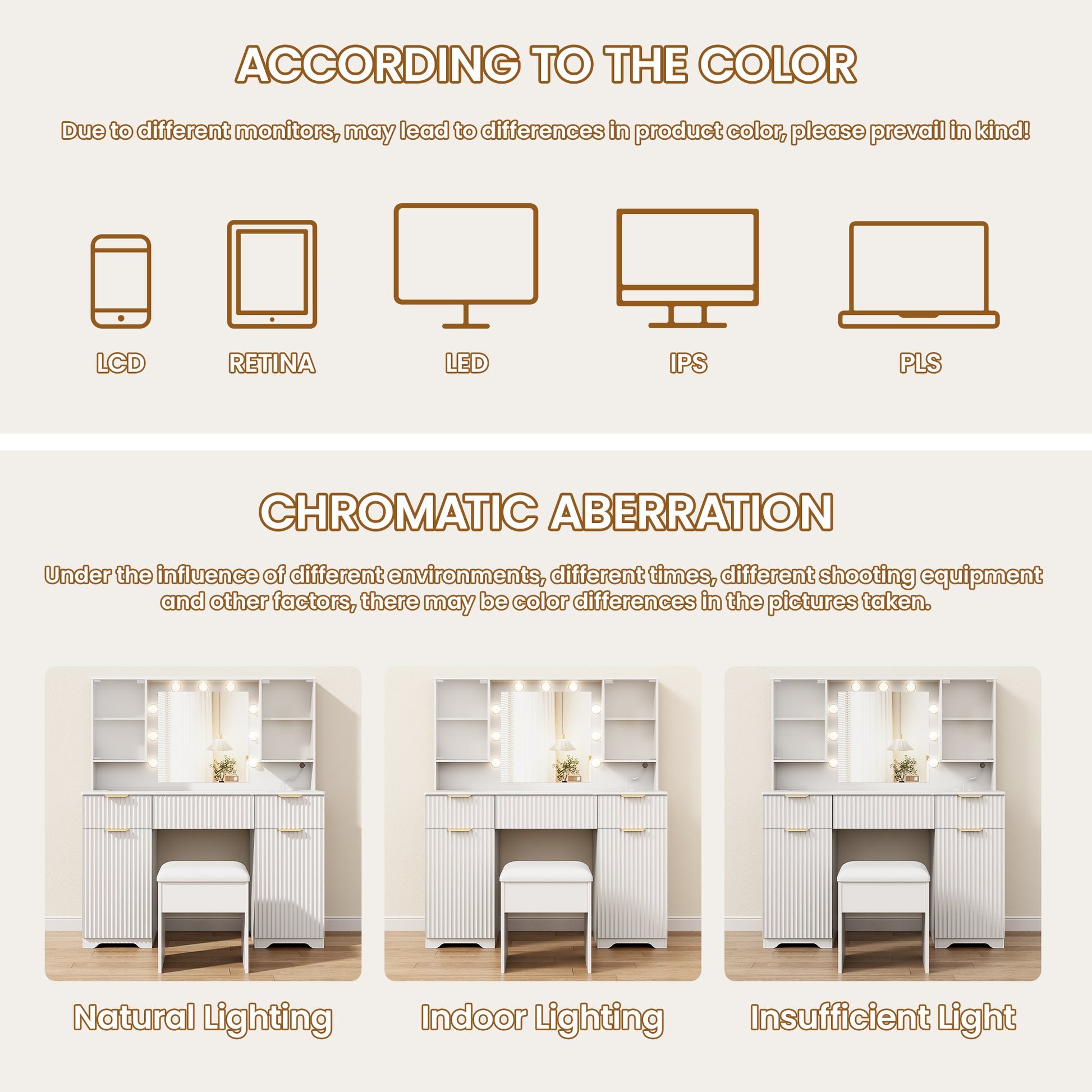 LainTene Vanity Set with Stool, Makeup Vanity Table with Lights and Mirror, Vanity Desk with 3 Drawers & 2 Large Storage Cabinets and Charging Station for Bedroom