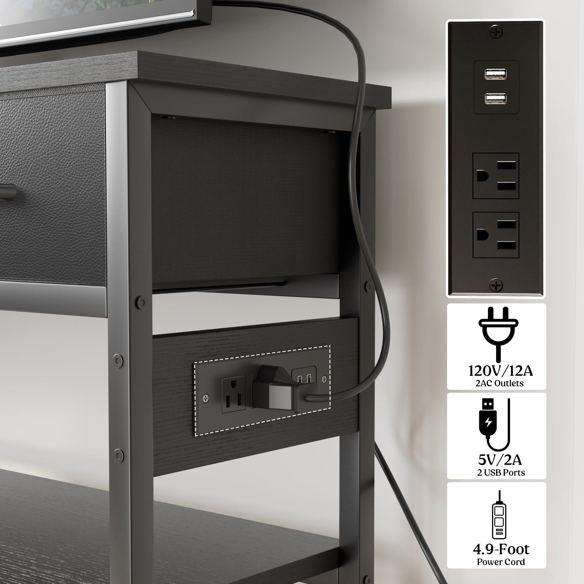 Smart Charging Console Table: Power your devices directly from this entryway table with 2 grounded AC outlets and 2 USB ports. Integrated cord management keeps wires hidden for a clean look.